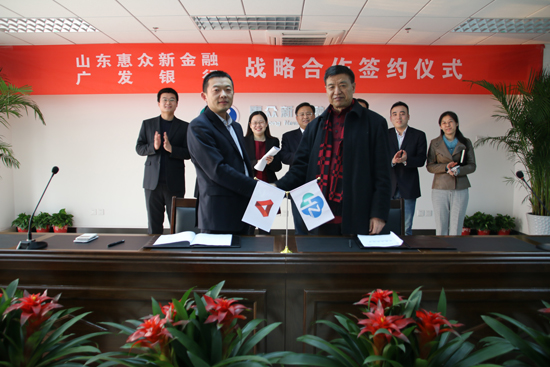 山东惠众新金融与多家银行签署了战略合作协议。图为与广发银行济南分行签约。