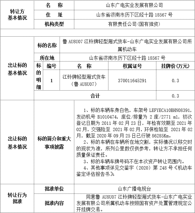 鲁AU8U07江铃牌轻型厢式货车-山东广电实业发展有限公司所属机动车